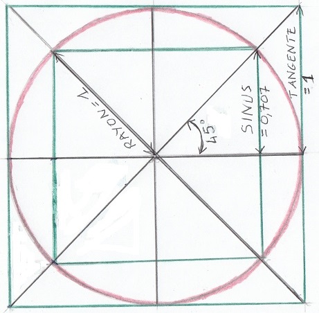 Trigonométrie : (Sinus² + Cosinus²)=1 --- (a²+b²=c²) Pythagore.