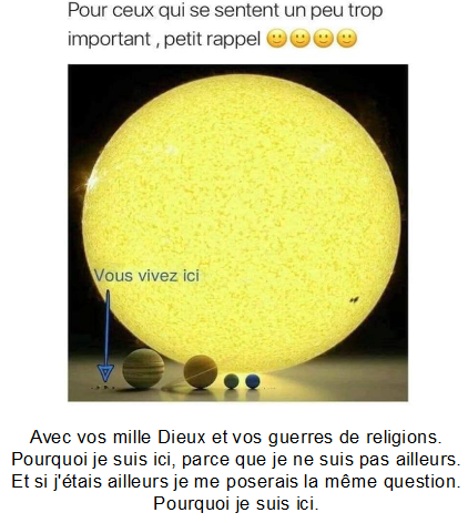 Il te reste ta foi de croire sans preuves celle de se mentir divinement à soi-même, c'est à dire rien de cette menterie qui n'a que pour utilité que de te rendre obéïssant et dont les religions et sectes t'abreuvent pour étendre leurs pouvoirs d'autorité, de territoire et d'argent.